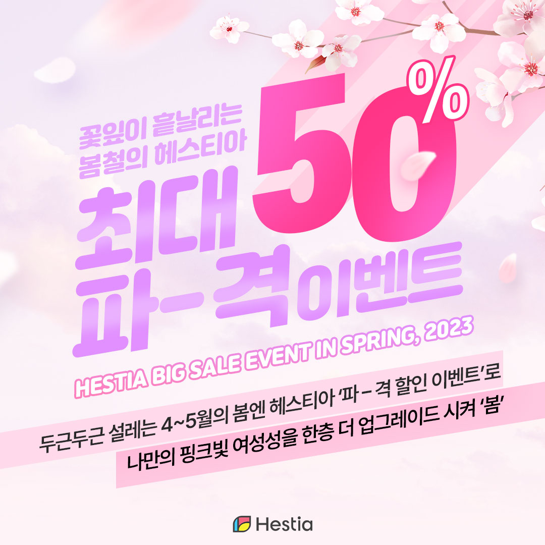 ★꽃잎이 흩날리는 봄철의 헤스티아 최대 50% 파격 할인 이벤트!!★