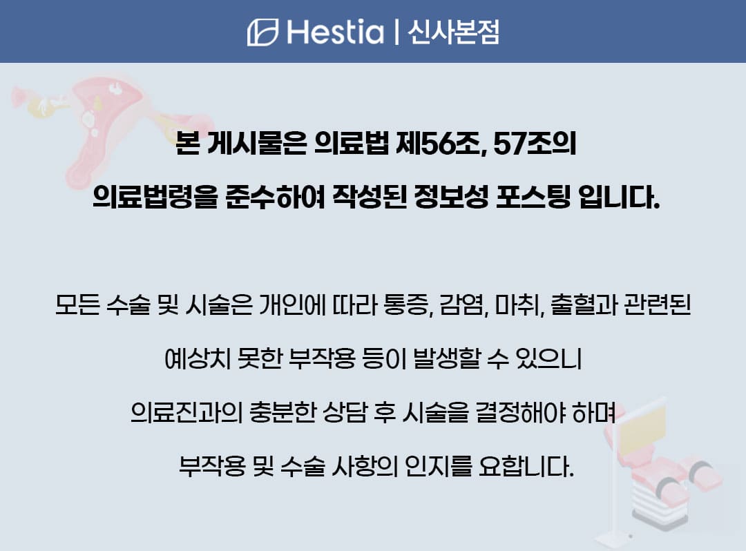 서울 강남 산부인과 추천 헤스티아 여성의원 신사본점은 수술 경험과 후기가 다양하여 수술 만족도를 더 높게 가져가실 수 있습니다.