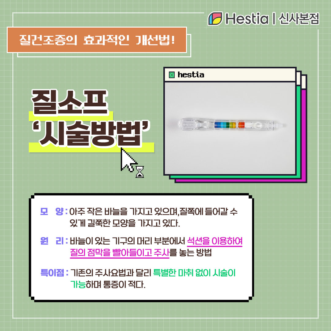 진행이 가능하다 보니 그만큼 질건조증치료에 인기가 더 많은 시술입니다.
